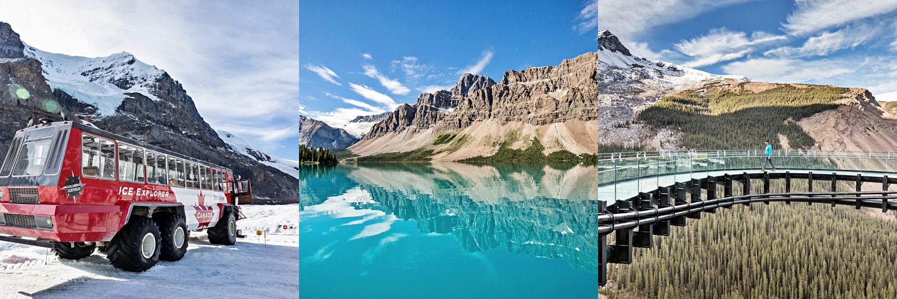 보석처럼 빛나는 패트리샤 호수, 재스퍼의 전경을 한눈에 담을 수 있는 재스퍼 스카이트램 그리고 고즈넉한 풍경이 일품인 피라미드 호수입니다.