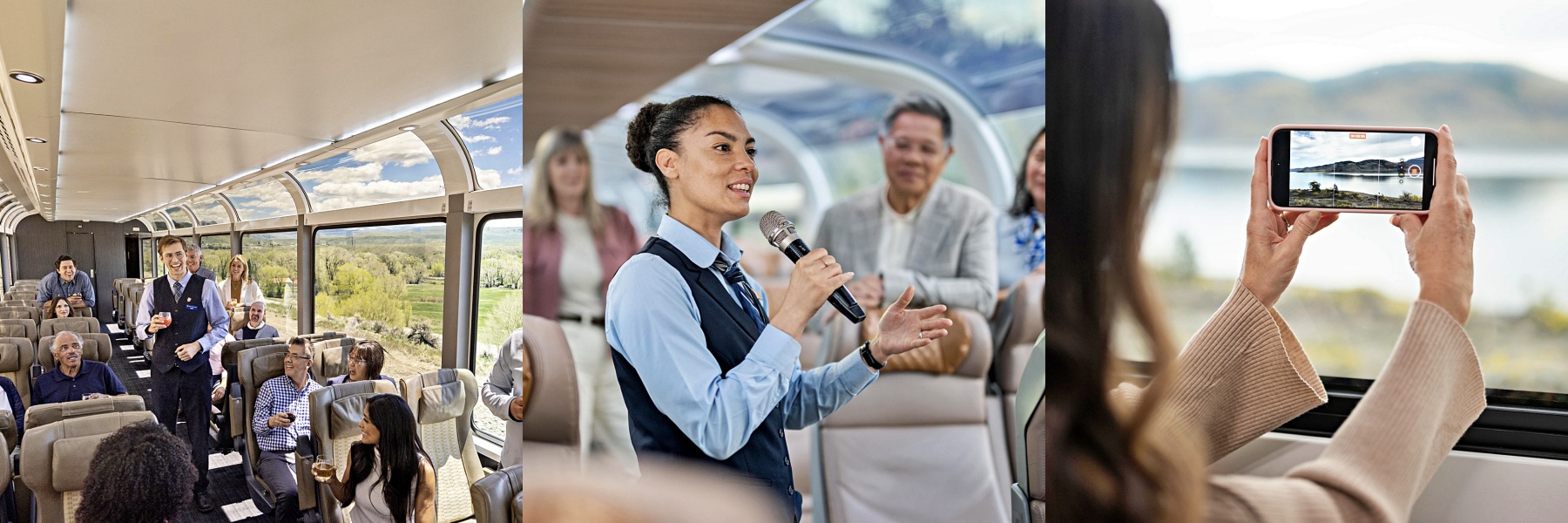 이른 아침, 해안 도시 밴쿠버를 출발하여 브리티시컬럼비아주 내륙의 심장부에 위치한 캠루프스로 향하는 로키 마운티니어(Rocky Mountaineer) 열차에 오릅니다.