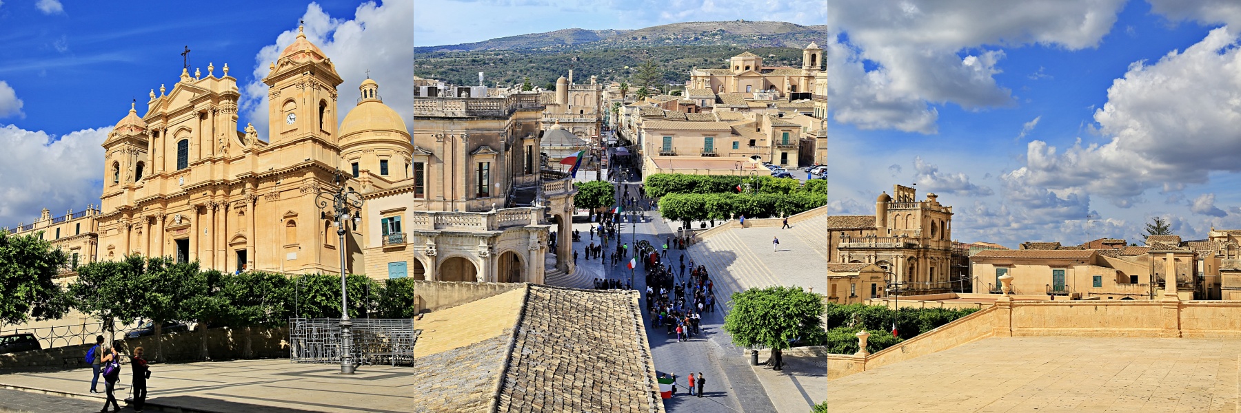 오전 시간 동안 도시 전체가 바로크 양식으로 둘러싸인 노토를 여행합니다.